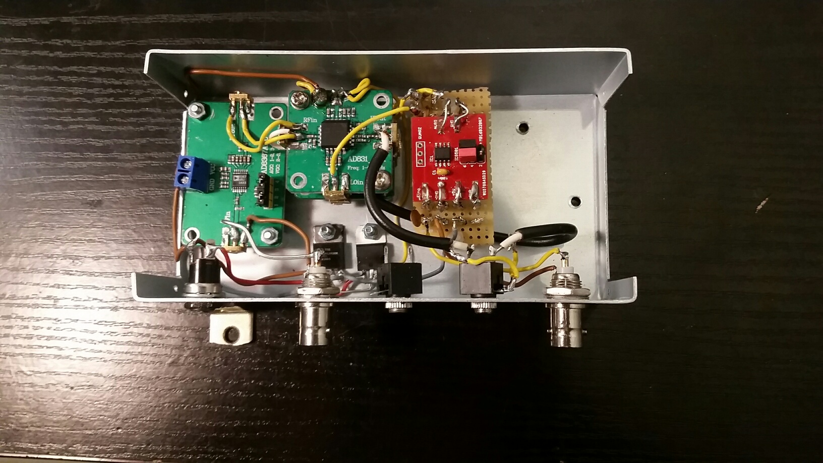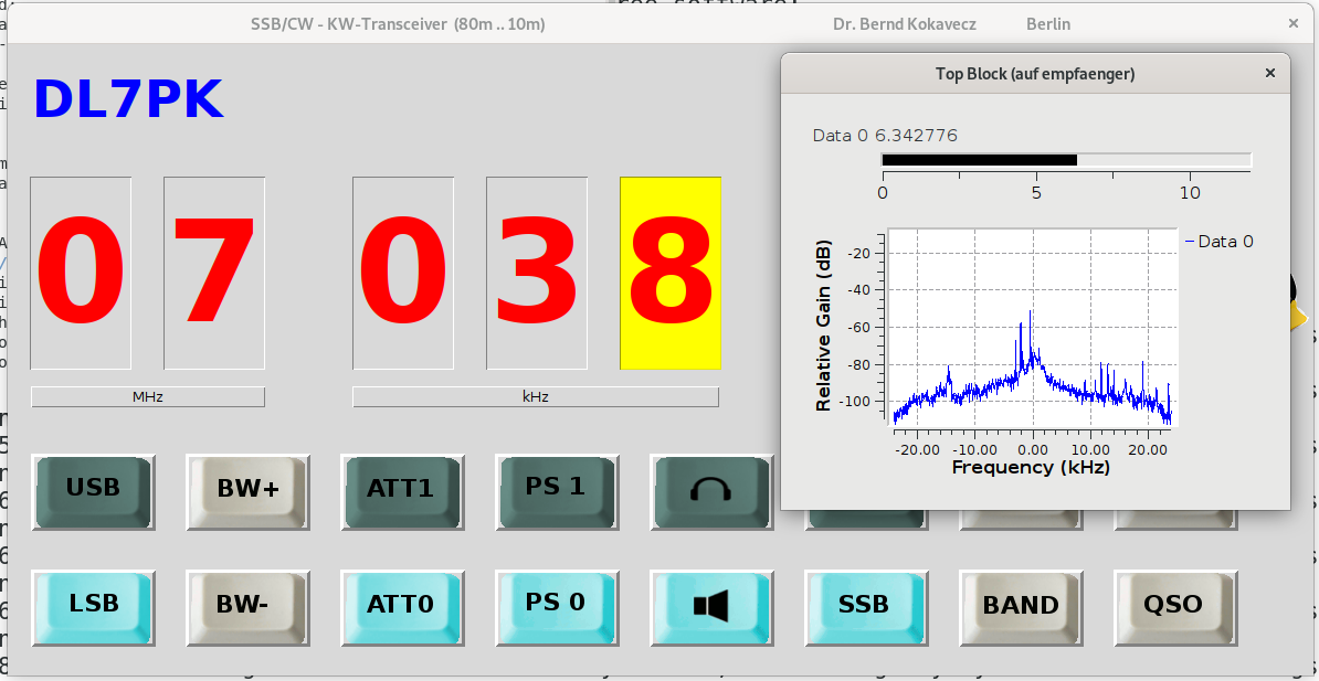 The Transmitter uses the same Mixers for Modulation. It is followed by a RF-Poweramplifier (Kit) from KN-Electronic (max. 50 W) and a Lowpass-Filter (Kit from KN-Electronic).