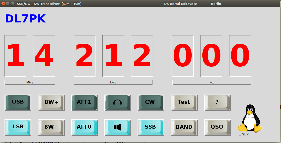 Auch wenn viele Funktionen über den Touch-Screen ausgelöst werden, sollte doch ein Mindestmaß an haptischen Eigenschaften klassischer Funkgeräte erhalten bleiben. So habe ich für die Frequenzeinstellung einen Impulsgeber eingesetzt. Die Dezimalstelle, auf die er und die Step-Taster wirken, wird duch Antippen der entsprechenden Ziffer gewählt, die dann gelb hinterlegt erscheint.
