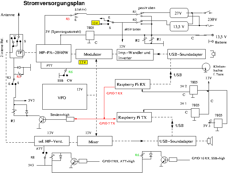 Das Blockschaltbild (Versorgungsspannungen) R bedeutet Relais!