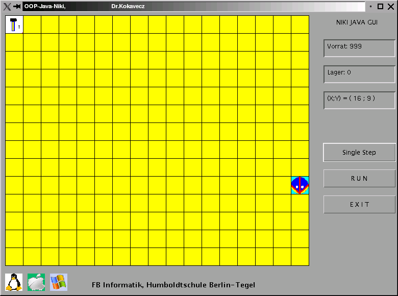In einer zweiten Quelltextdatei (Roboter2.java) wird der verbesserte Roboter programmiert, der den Primitivroboter Niki beerbt.